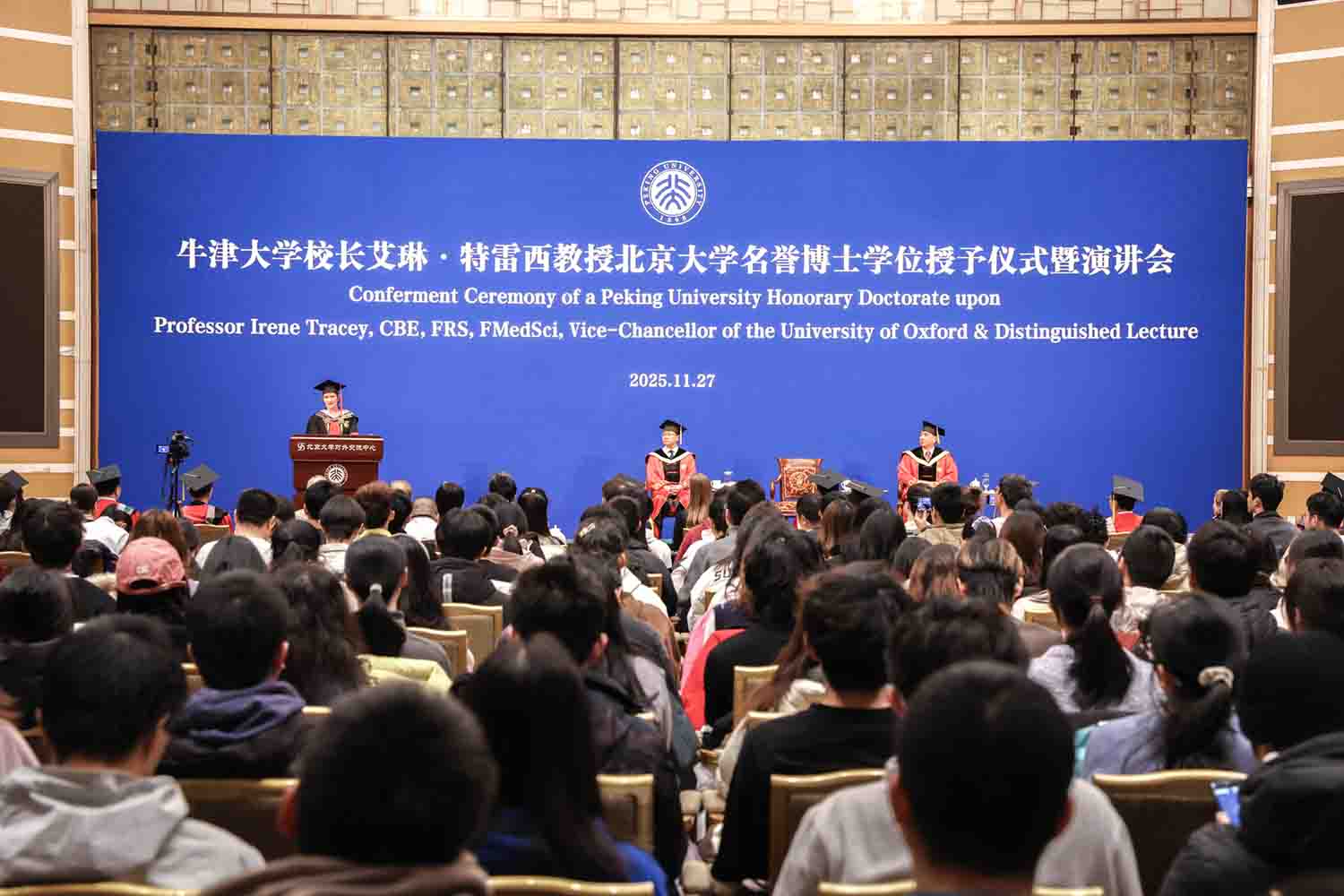 长跑队伍从博雅塔下经过,留下一派青春飞扬的笑意。
